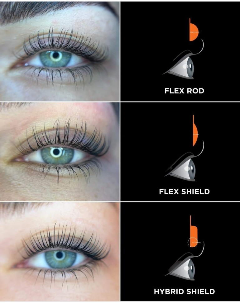 - FLEX SHIELDS suitable for a dramatic L-curl lift from the lash line. Box comes in small, medium and large pairs